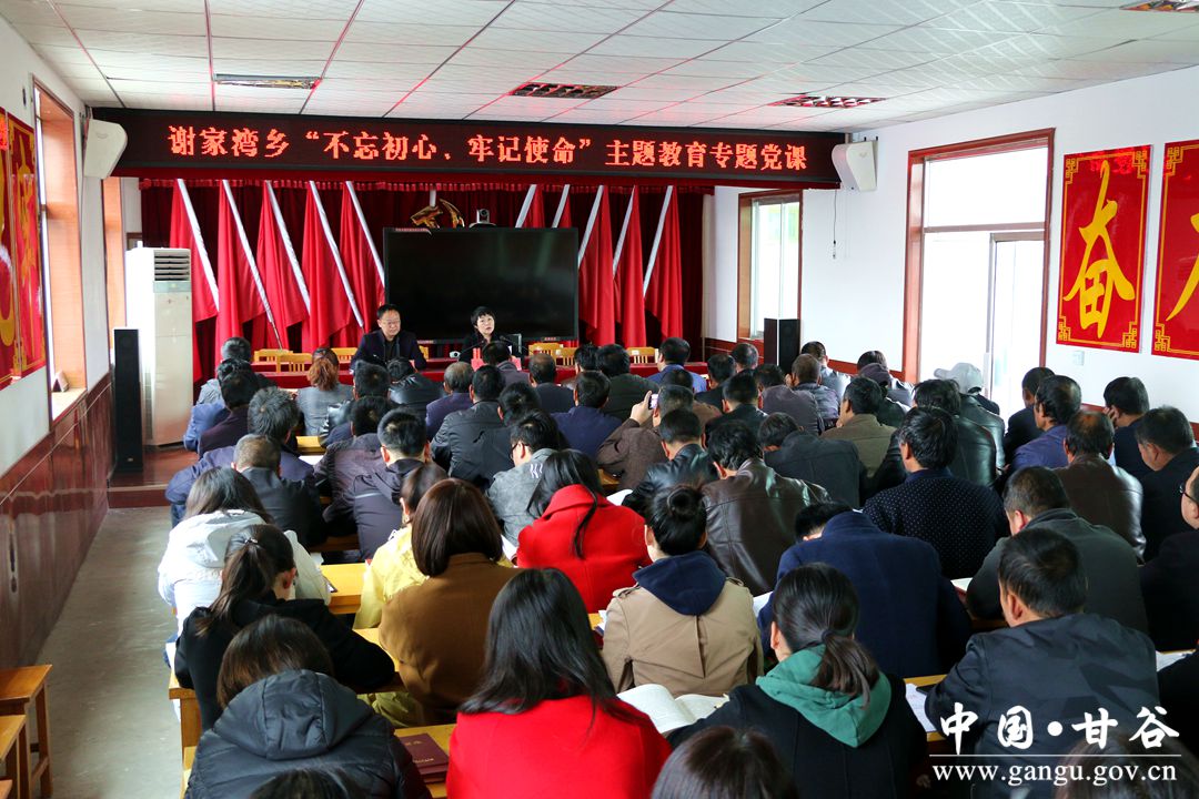 10月29日,甘谷縣委常委、紀委書記、監(jiān)委主任謝輝深入謝家灣鄉(xiāng)為全鄉(xiāng)黨員作“不忘初心、牢記使命”主題教育專題黨課輔導。謝家灣鄉(xiāng)黨委書記張宏斌主持會議。謝家灣鄉(xiāng)黨員干部、村黨支部書記共140余人聆聽了黨課。