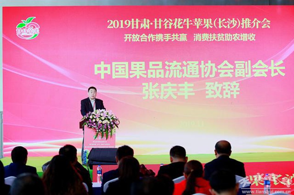 中國(guó)果品流通協(xié)會(huì)副會(huì)長(zhǎng)張慶豐在宣傳推介會(huì)上致辭。