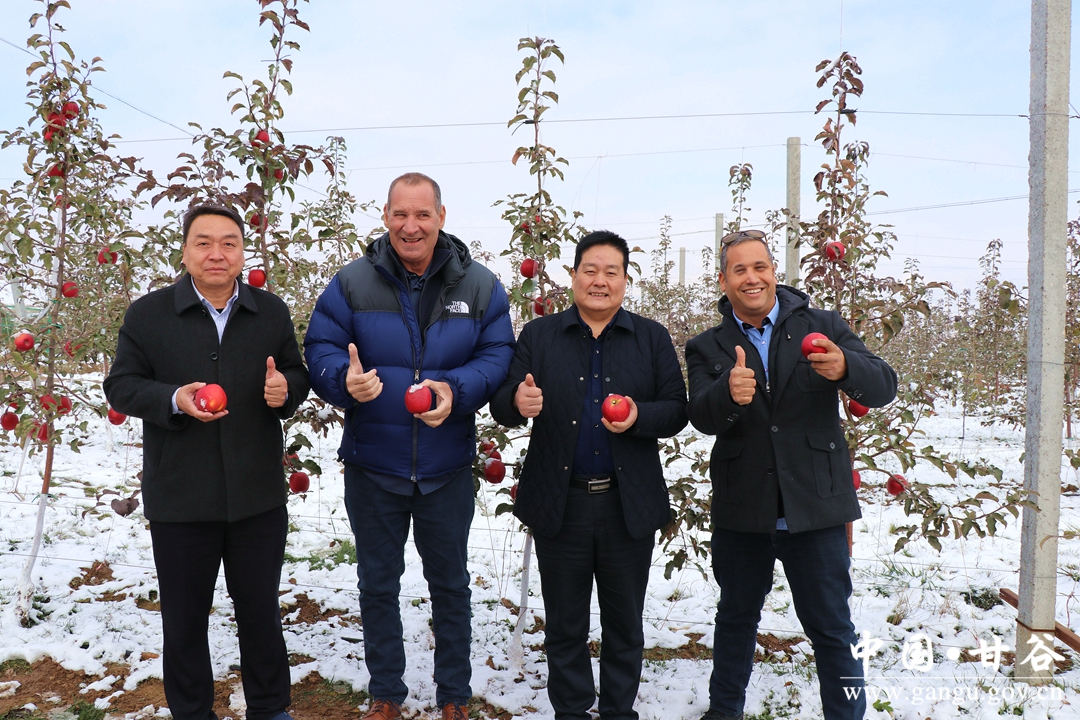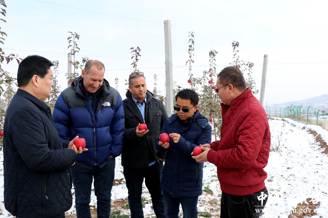 11月25日,以色列種植專家YARON(亞龍)和加拿大WWT公司董事長OHAD(歐哈德)在天水市外國專家局局長鮮志偉的陪同下來甘谷縣考察指導(dǎo)蘋果產(chǎn)業(yè)。