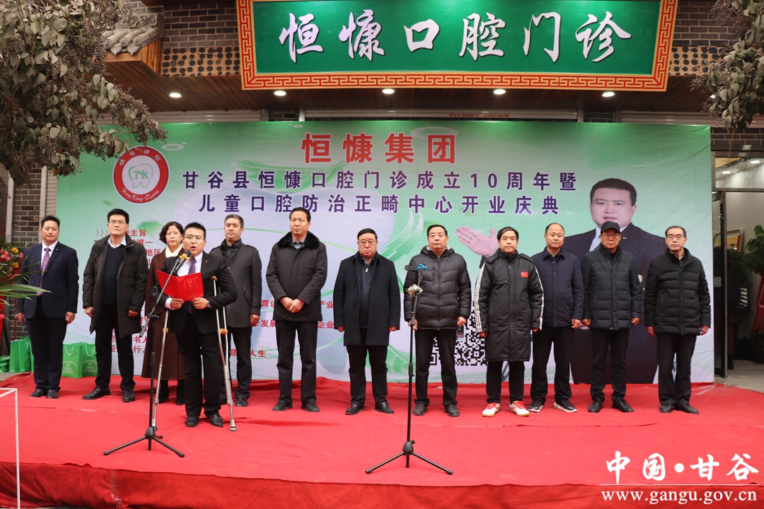 1月1日,甘谷縣舉行恒慷口腔門診成立10周年暨兒童口腔防治正畸中心開業(yè)慶典,縣政協(xié)主席馬驥,縣委常委、宣傳部長張慶元,縣人大常委會副主任鄭建子,縣政協(xié)副主席馬清平出席開業(yè)慶典并參觀。