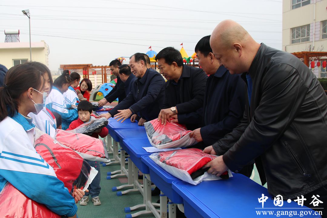 捐贈儀式上,甘谷縣冀城公交車公司為孩子們帶來了88件棉衣,總價值15000多元?h教育局負責人代表全體師生向愛心人士的善舉表示由衷的感謝,冀城公交車公司負責人表示,為孩子們辦點實實在在的事情,是他們應盡的社會責任和義務。參加捐贈儀式的愛心人士現(xiàn)場為孩子們發(fā)放了棉衣,并同全校師生合影留念。
