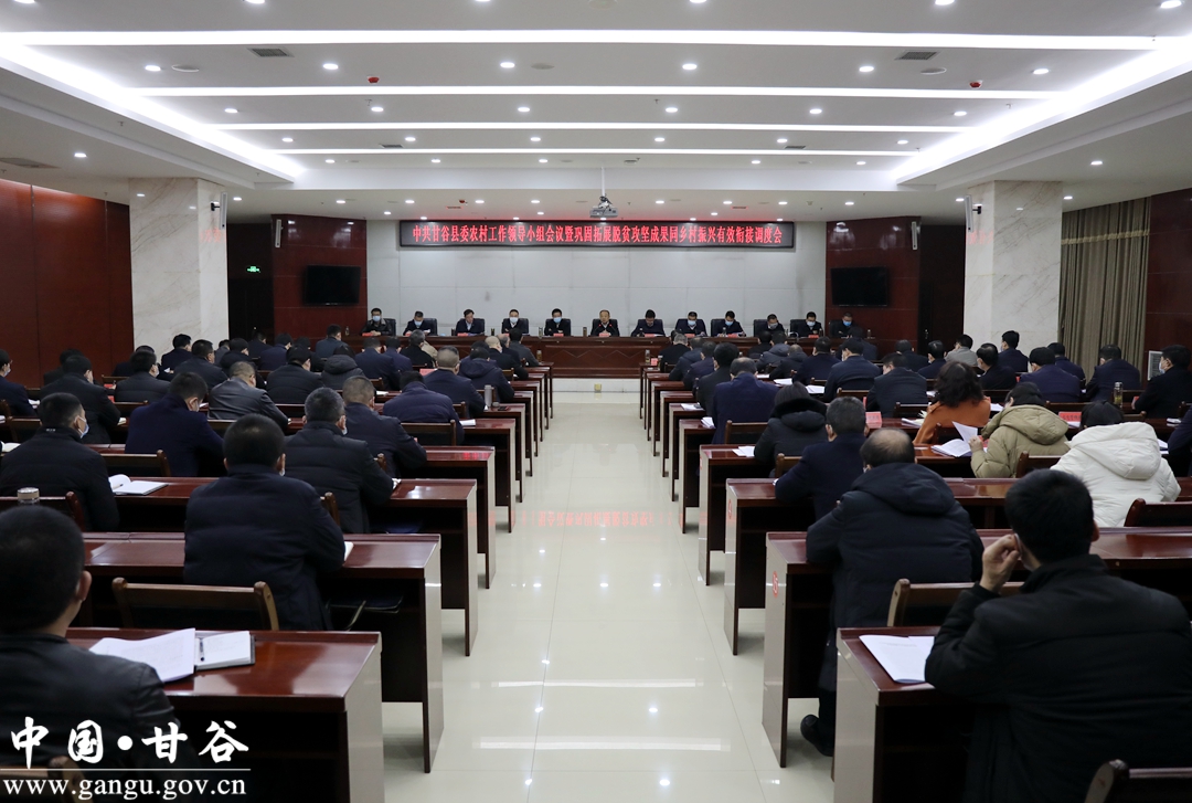 12月13日,甘谷縣召開縣委農(nóng)村工作領(lǐng)導(dǎo)小組會(huì)議暨鞏固拓展脫貧攻堅(jiān)成果同鄉(xiāng)村振興有效銜接調(diào)度會(huì)議。縣委書記吳健出席會(huì)議并講話,縣委副書記、縣長(zhǎng)孫忠平主持會(huì)議,縣委副書記林如海安排國(guó)家鞏固脫貧攻堅(jiān)成果后評(píng)估準(zhǔn)備工作,副縣長(zhǎng)金輝通報(bào)媒體暗訪和省級(jí)鞏固脫貧攻堅(jiān)成果專項(xiàng)考核有關(guān)問題?h四大組織全體在家領(lǐng)導(dǎo),縣直各部門及駐縣有關(guān)單位主要負(fù)責(zé)人,各鄉(xiāng)鎮(zhèn)黨委書記、鄉(xiāng)鎮(zhèn)長(zhǎng)、鄉(xiāng)村振興工作站副站長(zhǎng)共計(jì)110余人參加會(huì)議。