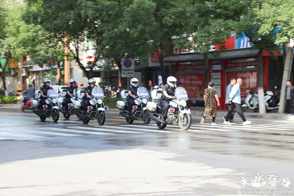 甘谷縣公安局交警大隊(duì)秩序中隊(duì)中隊(duì)長(zhǎng)李偉民正在執(zhí)勤點(diǎn)維護(hù)秩序,他告訴記者,“高考期間,我們按照勤務(wù)安排,對(duì)所有考點(diǎn)進(jìn)行交通管制,在每個(gè)考點(diǎn)配備快騎隊(duì)員,處置突發(fā)情況,我們?nèi)S護(hù)高考期間暢通安全的道路交通環(huán)境!
