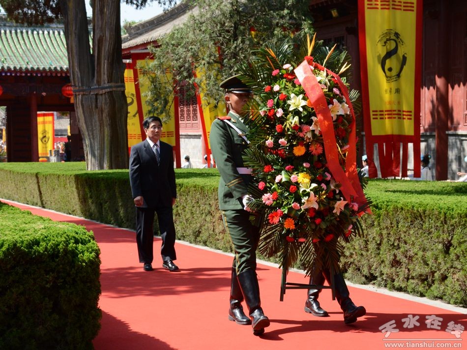 樂舞告祭后,王家瑞、林鐸、林政則、唐仁健、馮健身、孫偉等緩步走進伏羲廟,敬獻花籃、瞻仰伏羲圣像。