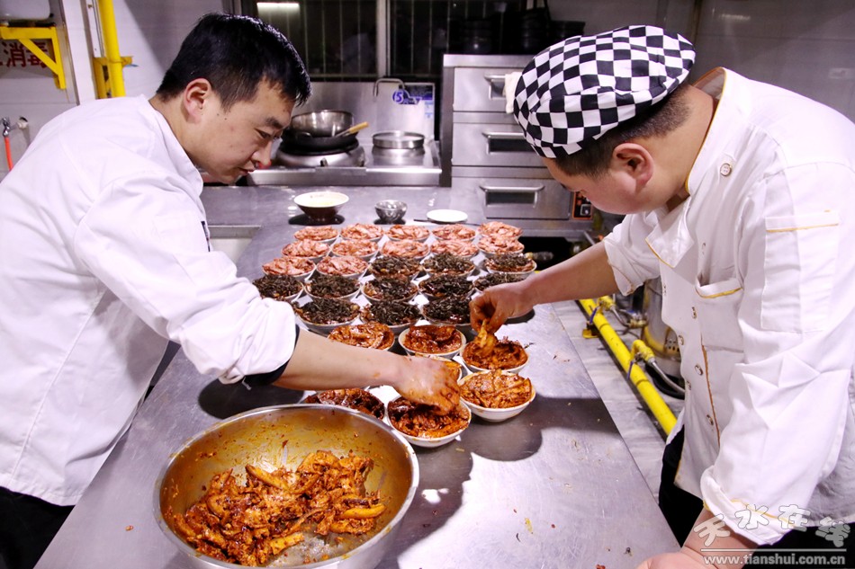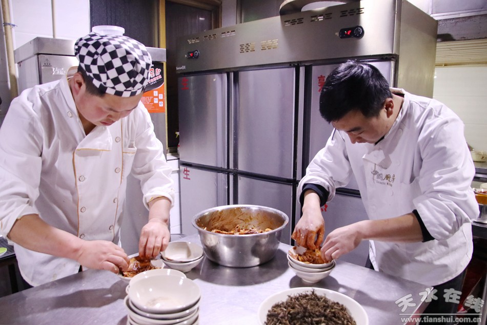 品種豐富,入味又不油膩還耐儲放的天水扣菜,正和里脊、清燉、帶把肘子、四喜丸子、八寶雞等口味濃郁、厚重的傳統(tǒng)名菜,共同構(gòu)筑著天水美食的底蘊(yùn)。古老的民俗和傳承的美食,在新時代,依然被一茬茬的舌尖收割著。