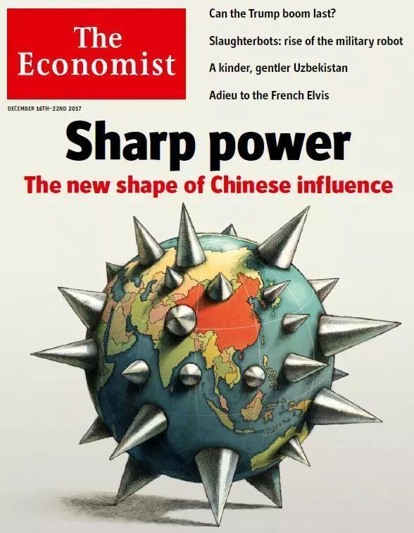 “銳實(shí)力”在國(guó)際輿論市場(chǎng)的“走紅”,源于2017年12月5日美國(guó)國(guó)家民主基金會(huì)的一份報(bào)告。此后,英國(guó)《經(jīng)濟(jì)學(xué)人》雜志將“銳實(shí)力”一詞置于封面,西方媒體紛紛炒作。