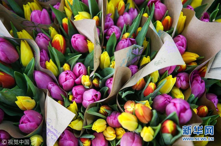 當(dāng)?shù)貢r(shí)間2019年3月6日,俄羅斯喀山,國(guó)際婦女節(jié)將至,當(dāng)?shù)仵r花市場(chǎng)火爆。 (圖片來(lái)源:視覺(jué)中國(guó))