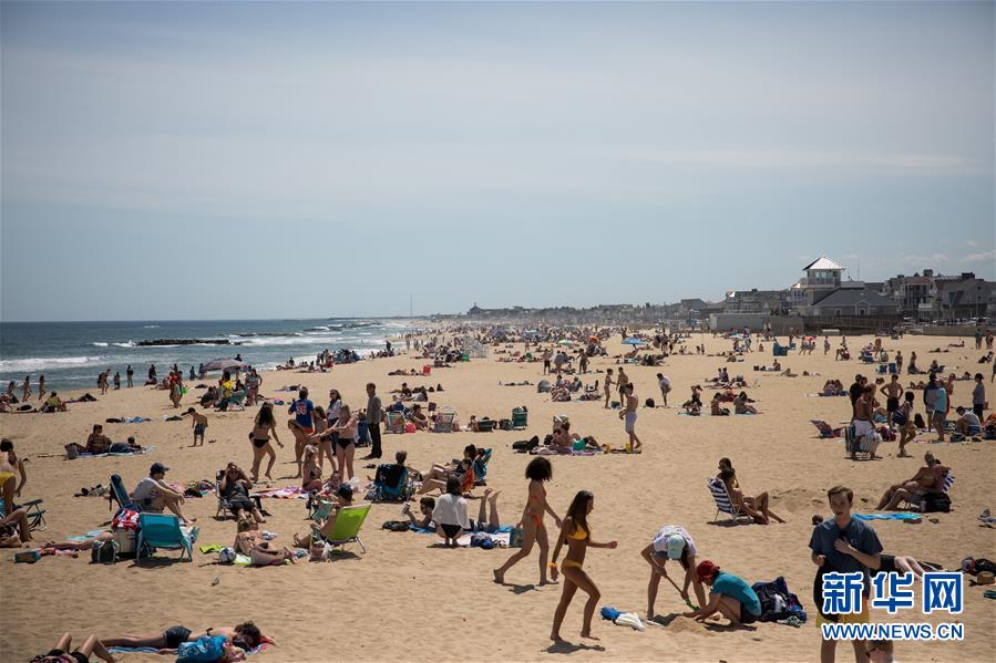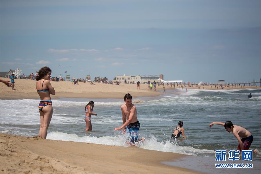 5月16日,人們走向美國(guó)新澤西州貝爾馬海灘。 新華社發(fā)(郭克攝)
