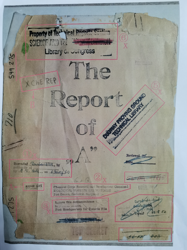 731部隊(duì)進(jìn)行人體實(shí)驗(yàn)的炭疽菌實(shí)驗(yàn)報(bào)告封面圖,上面有德特里克堡基地的字樣。新華社記者 王建 攝