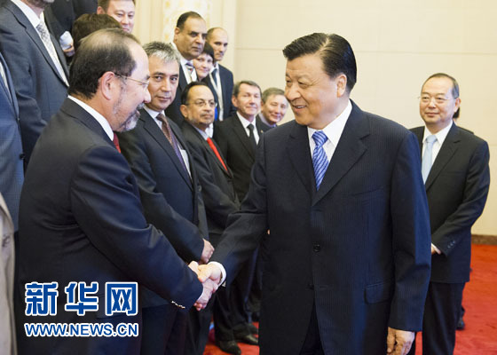 7月3日,中共中央政治局常委、中央書記處書記劉云山在北京人民大會堂集體會見絲綢之路經濟帶媒體合作論壇外國媒體代表。 新華社記者 黃敬文攝