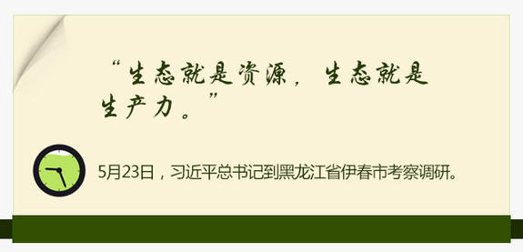 習近平總書記指出,綠水青山是金山銀山,黑龍江的冰天雪地也是金山銀山。要加強生態(tài)文明建設,劃定生態(tài)保護紅線,為可持續(xù)發(fā)展留足空間,為子孫后代留下天藍地綠水清的家園。10日,他在參加青海代表團審議時又強調,一定要生態(tài)保護優(yōu)先,扎扎實實推進生態(tài)環(huán)境保護,推動形成綠色發(fā)展方式和生活方式。