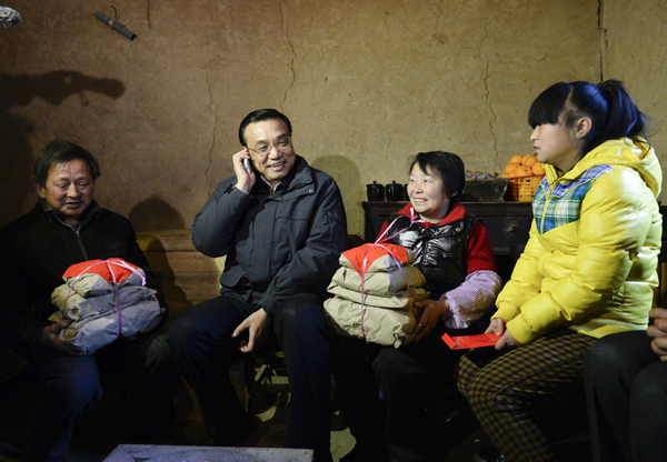 連續(xù)4年,李克強(qiáng)都在春節(jié)前夕深入偏遠(yuǎn)窮苦地區(qū)看望百姓。今年春節(jié)前的最后一次國(guó)務(wù)院常務(wù)會(huì)上,他專門部署要求全國(guó)各縣(市、區(qū))建立健全由政府負(fù)責(zé)人牽頭的困難群眾生活保障工作協(xié)調(diào)機(jī)制,一定要把黨中央、國(guó)務(wù)院相關(guān)決策部署落實(shí)到基層。