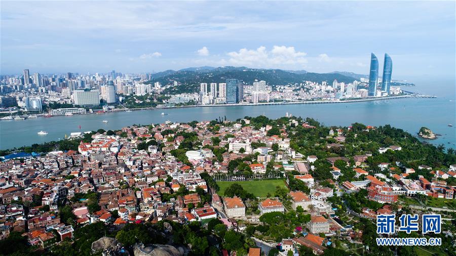 這是鳥瞰廈門鼓浪嶼和廈門島(8月24日攝)。
