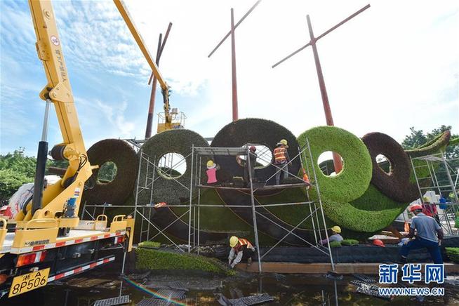 8月3日,工人在廈門白鷺洲公園布置花壇。金磚國家領(lǐng)導(dǎo)人第九次會晤進(jìn)入倒計時一個月,廈門正在進(jìn)行最后的籌備,各項工作緊張有序進(jìn)行,整座城市喜迎盛會的氣氛日漸濃厚。 新華社記者 宋為偉 攝