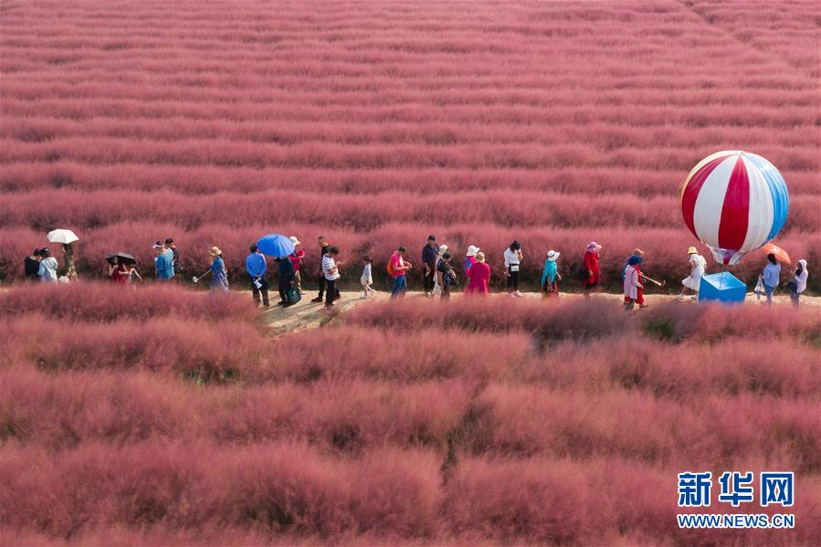 國慶假期,江蘇南京溧水區(qū)郭興莊園種植的景觀植物粉黛亂子草進(jìn)入盛花期,成片的“粉紅田野”吸引了眾多游客。這是10月3日,游客在“粉紅田野”中游玩 新華社發(fā)(蘇陽 攝)。
