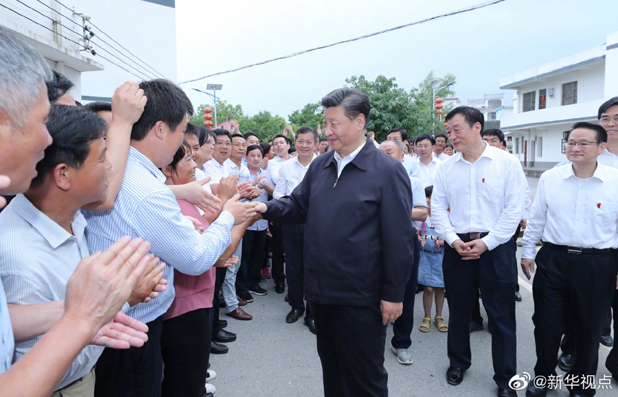 于都縣梓山鎮(zhèn)潭頭村已有700多年歷史了,2017年實現(xiàn)了整村脫貧。20日下午,習近平總書記來到這里,查看村容村貌,詢問舊房改造、村落環(huán)境整治等情況。紅軍烈士后代孫觀發(fā)看到總書記來了,率一家老小歡迎總書記到他家做客。習近平總書記看了廚房、臥室、后院、廁所,對他家住房和衛(wèi)生改善情況表示滿意。隨后,總書記同他一家和鎮(zhèn)、村干部圍坐在一起話家常。聽說孫觀發(fā)一家去年收入7萬多元,家人既有在外打工的,也有在家門口就業(yè)的,孩子們照看和上學都有保障,他十分高興,說只要跟著共產黨走,偉大復興就一定能實現(xiàn),好日子還在后頭呢。ㄎ淖郑簭垥运 攝影:鞠鵬、殷博古)