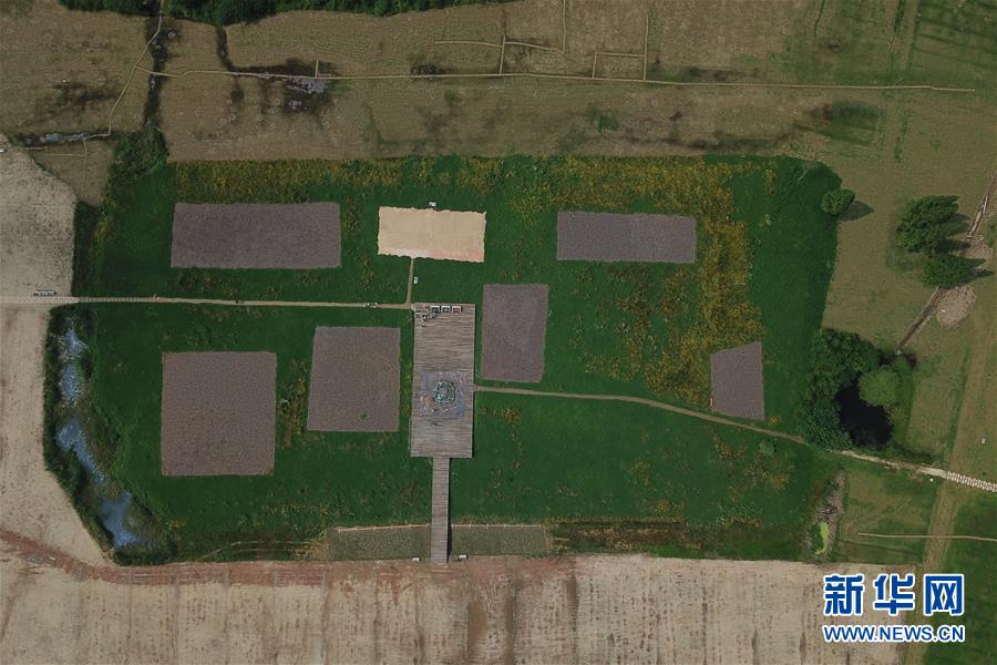 6月23日無人機(jī)拍攝的位于浙江省杭州市的良渚國家考古遺址公園的宮殿區(qū)。新華社記者 黃宗治 攝