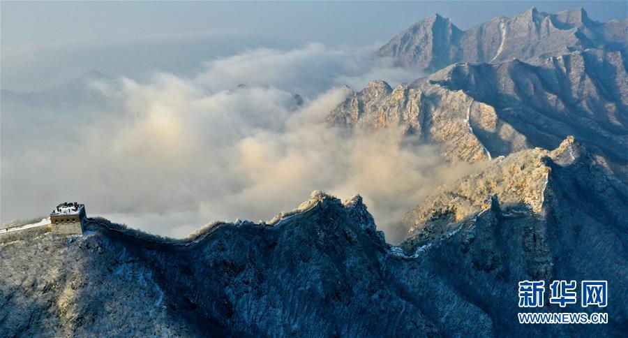 這是11月30日拍攝的北京懷柔箭扣長城雪景。 近日,北京迎來降雪天氣。在北京懷柔箭扣長城,晶瑩剔透的樹掛與蜿蜒的長城交相輝映,構(gòu)成了一幅壯觀的長城冬雪美麗畫卷。 新華社發(fā)(卜向東攝)