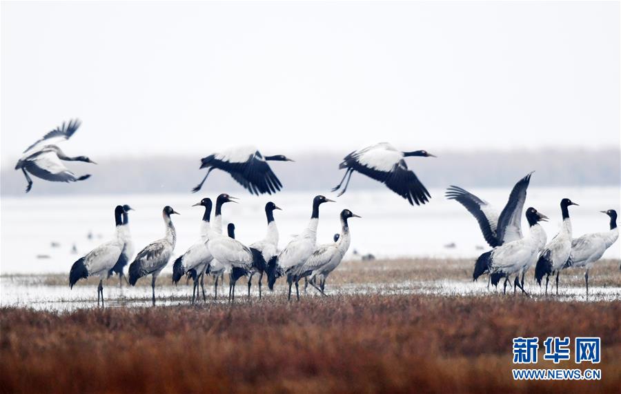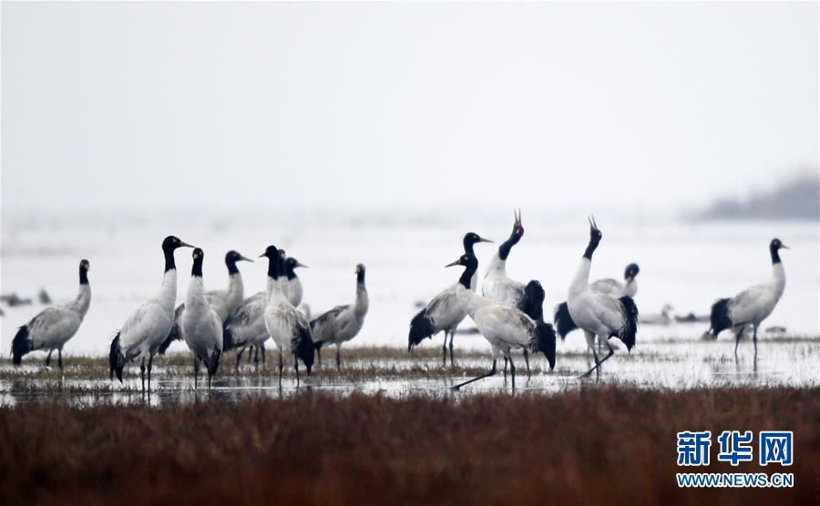 12月11日在貴州草海保護(hù)區(qū)拍攝的黑頸鶴。 新華社記者 楊文斌 攝