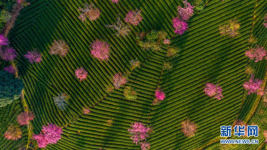 游客在云南南澗彝族自治縣無量山櫻花谷游玩(12月11日無人機拍攝)。近日,位于云南省南澗彝族自治縣的無量山櫻花谷迎來最佳觀賞期,如云似霞的櫻花與碧綠如染的茶園交織在一起,構(gòu)成了一道亮麗的風(fēng)景。新華社記者 胡超 攝