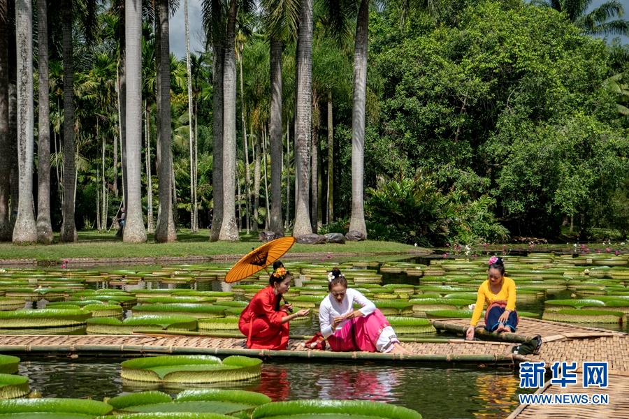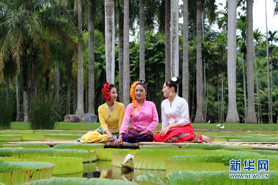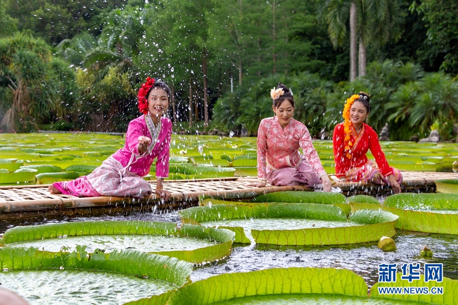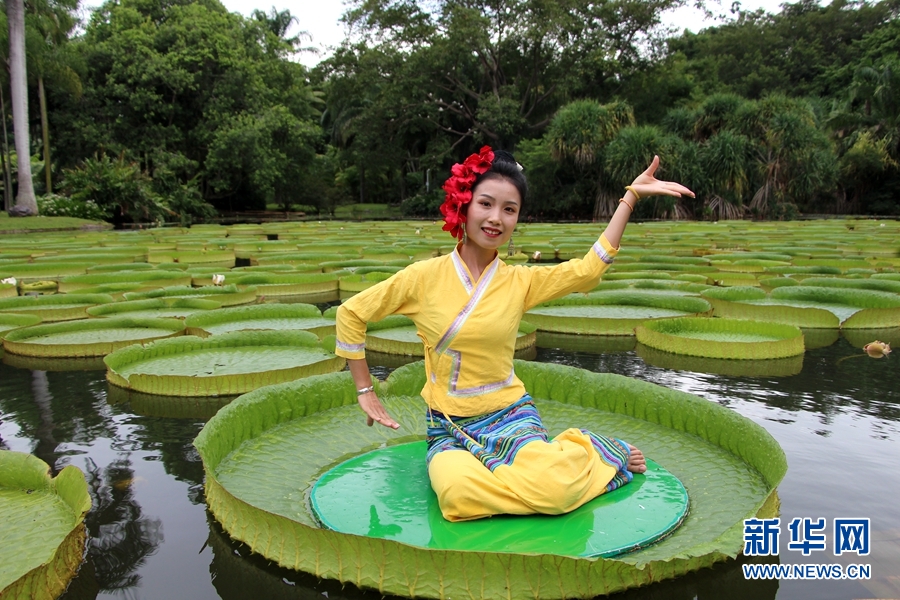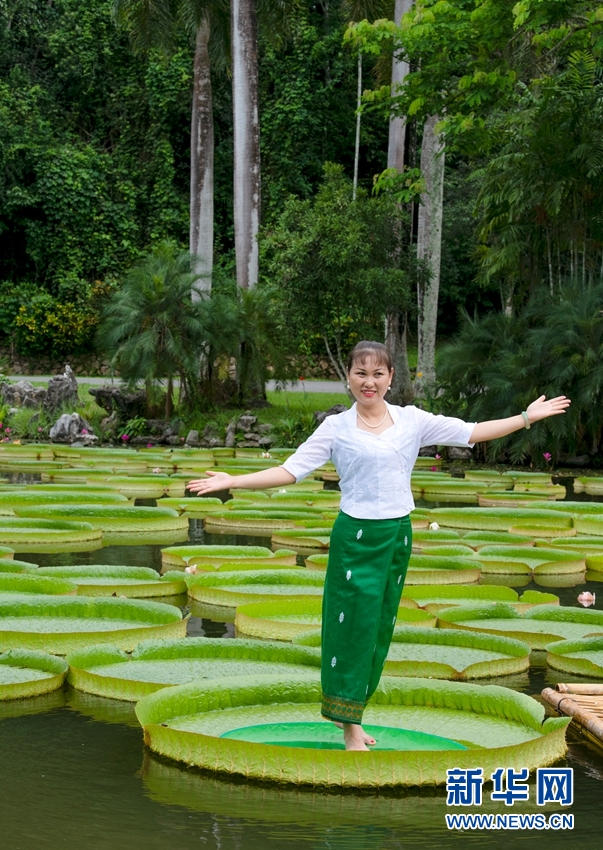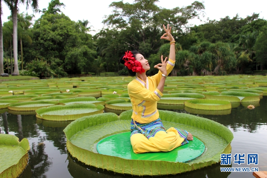 西雙版納熱帶植物園,王蓮進(jìn)入最佳觀賞期,傣家姑娘蓮葉上翩翩起舞。(攝于7月4日)新華網(wǎng)發(fā)(張嬌嬌 攝)
