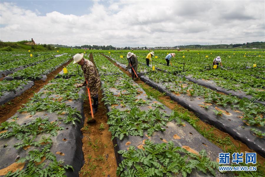 7月14日,村民在貴州省畢節(jié)市威寧縣草海鎮(zhèn)中海村的蔬菜基地里勞作。新華社發(fā)(羅大富 攝)