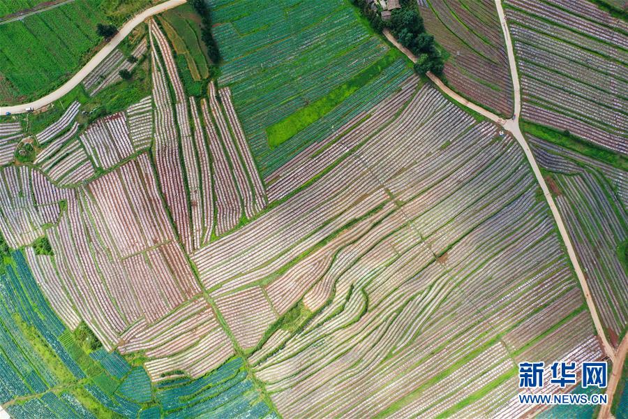 7月14日在貴州省畢節(jié)市威寧縣草海鎮(zhèn)中海村拍攝的蔬菜基地(無人機(jī)照片)。新華社發(fā)(羅大富 攝) |