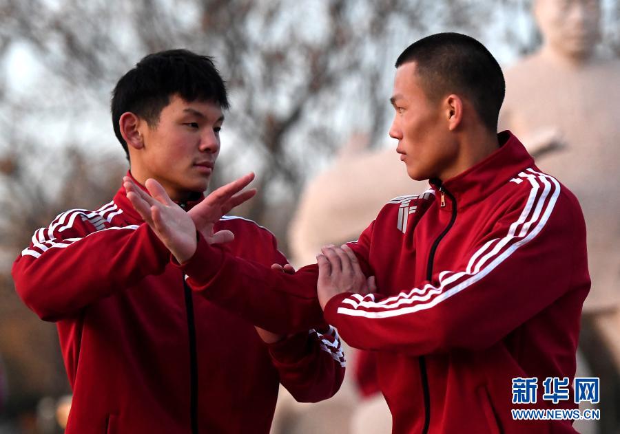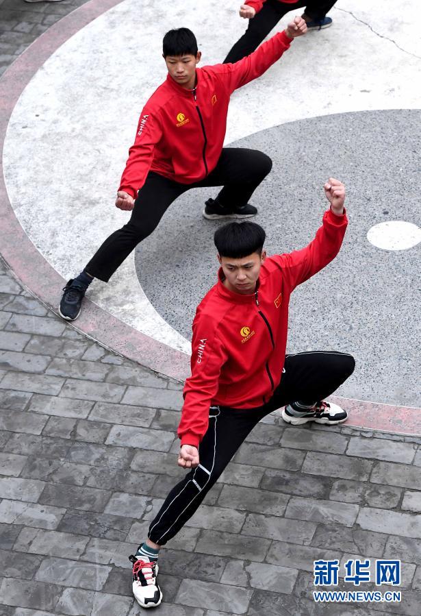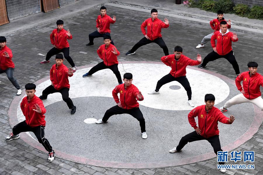 在河南省焦作市溫縣陳家溝太極拳祖祠內(nèi),一家太極拳學(xué)校的學(xué)員在練拳(12月14日攝)。新華社記者 李安 攝