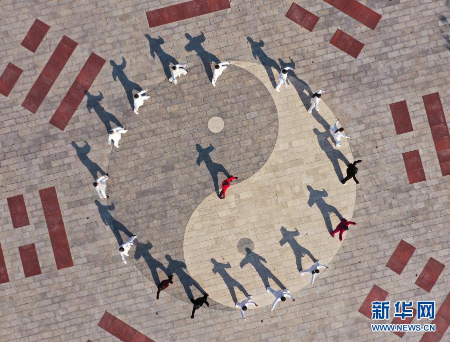 太極拳愛好者在河北省邯鄲市永年區(qū)太極小鎮(zhèn)習(xí)練太極拳(無人機(jī)照片,12月16日攝)。新華社發(fā)