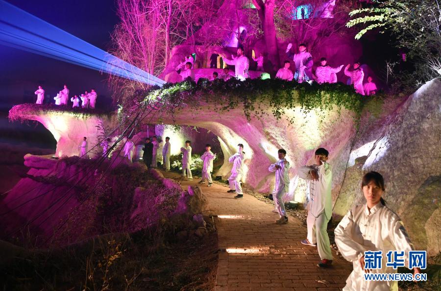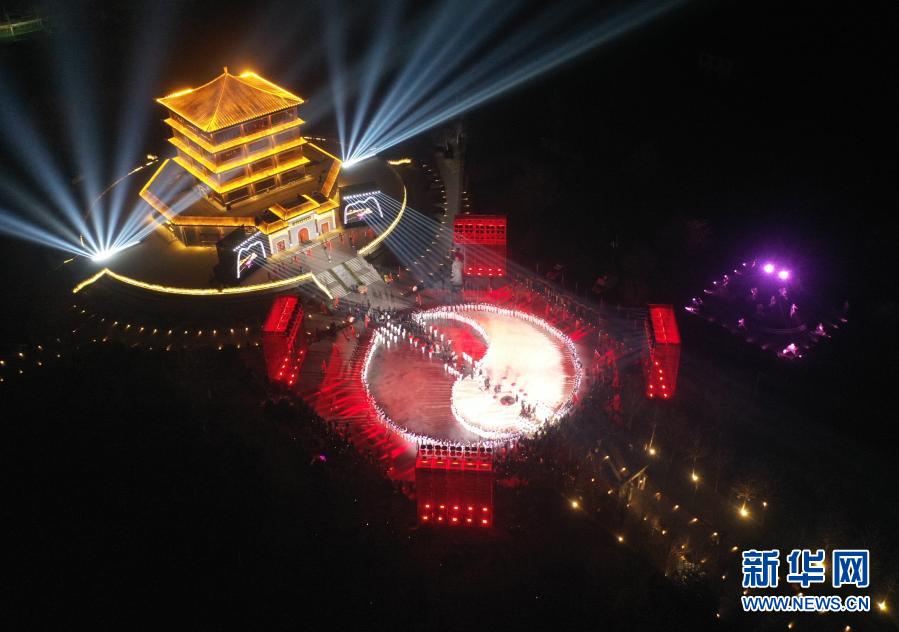 這是12月17日在河南省焦作市溫縣陳家溝拍攝的太極拳申遺成功慶祝儀式現(xiàn)場(無人機(jī)照片)。新華社記者 李嘉南 攝