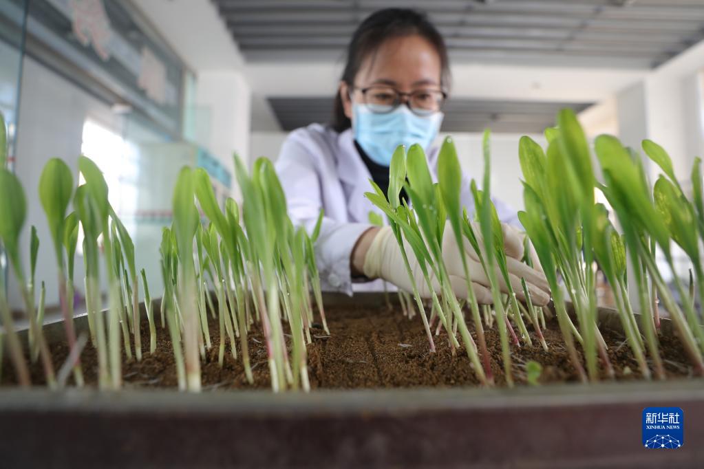 在遼寧東亞種業(yè)有限公司種子質量檢測中心,工作人員查看玉米種子發(fā)芽實驗結果(2020年3月16日攝)。新華社記者 楊青 攝