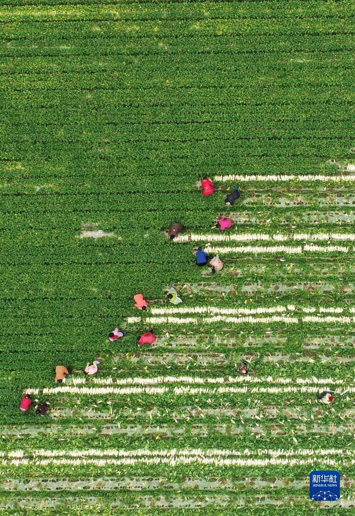 2月28日,在四川省南充市蓬安縣錦屏鎮(zhèn)中壩社區(qū),村民在地里勞作(無人機照片)。新華社發(fā)(劉永紅 攝)