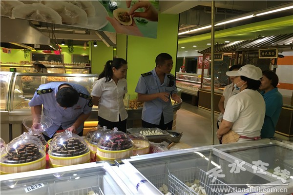 二是源頭嚴防、質(zhì)量嚴控,全力打造“三個放心”。通過資質(zhì)審查確保源頭放心。源頭嚴防是放心肉菜的重點環(huán)節(jié)。市縣食藥監(jiān)部門積極指導17家參與創(chuàng)建“放心肉菜示范超市”的單位通過開展供貨商資質(zhì)清理行動,選擇與經(jīng)營資質(zhì)合法、快檢能力健全、合格證明文件齊全、電子追溯系統(tǒng)完善的供應(yīng)商簽訂供應(yīng)合同和食用農(nóng)產(chǎn)品質(zhì)量安全協(xié)議,明確雙方責任義務(wù),確保源頭放心。通過全程追溯達到責任傳遞放心。通過推動超市落實“訂單農(nóng)業(yè)”“農(nóng)超對接”“廠超掛鉤”和“基地+加工企業(yè)+超市”等采購模式,直接與農(nóng)民專業(yè)合作社、大型生產(chǎn)基地和生豬屠宰廠對接,減少肉菜流通環(huán)節(jié)的同時,全面落實天水市《關(guān)于實施食用農(nóng)產(chǎn)品產(chǎn)地準出和市場準入制度的意見》要求,所有進入超市的食用農(nóng)產(chǎn)品必須提供批次產(chǎn)地證明、銷售憑證或檢驗檢疫證明等質(zhì)量責任傳遞證明文件,實現(xiàn)源頭可追溯。對超市內(nèi)銷售綠色、有機或無公害食用農(nóng)產(chǎn)品的,全面實施專區(qū)專柜銷售,并公示真實有效的認證證書,公開承諾符合認證時的質(zhì)量安全標準要求,讓消費者對購買的食用農(nóng)產(chǎn)品從生產(chǎn)、流通到銷售全過程一目了然,達到責任傳遞放心。通過檢驗檢測達到質(zhì)量安全放心。天水市食藥監(jiān)局充分發(fā)揮市食品檢驗檢測中心、食用農(nóng)產(chǎn)品快速檢測室和第三方檢測機構(gòu)的檢測功能,對不能提供隨貨同行檢測報告或相關(guān)證明的食用農(nóng)產(chǎn)品,實行入市登記、抽檢快檢和信息公示,對檢驗不合格的,一律禁止銷售。2017年共完成食用農(nóng)產(chǎn)品快速檢測9360批次,檢測合格率98%。