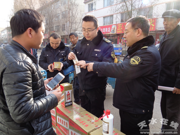 為保證全縣人民兩節(jié)期間食品藥品安全,近日,武山縣食藥監(jiān)局執(zhí)法人員在副局長張曉鵬的帶領(lǐng)下,聯(lián)合洛門鎮(zhèn)監(jiān)管所執(zhí)法人員對該轄區(qū)食品藥品市場進行專項檢查,分別在洛門百惠超市門口、西大街發(fā)現(xiàn)有攤點宣傳可用一百元連號、豹子號的人民幣為幌子兌換標價為2388元的疑似假酒一箱。