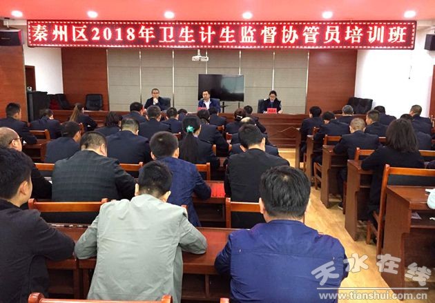 為進一步完善秦州區(qū)衛(wèi)生計生監(jiān)督協(xié)管隊伍建設,提高廣大衛(wèi)生計生監(jiān)督協(xié)管員業(yè)務水平,推進2018年衛(wèi)生計生監(jiān)督協(xié)管工作的有序開展,按照國家基本公共衛(wèi)生服務(新3版)中《衛(wèi)生計生監(jiān)督協(xié)管規(guī)范》及《甘肅省衛(wèi)生監(jiān)督協(xié)管工作實施細則》的要求,市衛(wèi)生計生委綜合監(jiān)督執(zhí)法局聯(lián)合秦州區(qū)衛(wèi)計局于2018年4月24日在秦州區(qū)行政辦公大樓區(qū)衛(wèi)計局會議室組織召開了2018年秦州區(qū)衛(wèi)生計生監(jiān)督協(xié)管員工作培訓會,來自秦州區(qū)各鄉(xiāng)(鎮(zhèn))衛(wèi)生院及社區(qū)衛(wèi)生服務中心的衛(wèi)生計生監(jiān)督協(xié)管員及市衛(wèi)生計生委綜合監(jiān)督執(zhí)法局有關監(jiān)督員共七十余人參加了培訓。