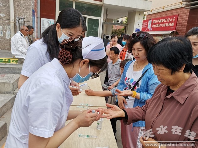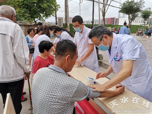 隨后,我院黨員志愿者分兩組開展志愿服務(wù)活動,其中一組在社區(qū)志愿者的帶領(lǐng)下拿著笤帚、簸箕、抹布等各種工具,為居民清掃路面和綠化帶垃圾。有的撿拾綠化帶垃圾,將灌木叢中的塑料袋、紙屑等進行了細(xì)致的清理;有的打掃小區(qū)道路雜物,經(jīng)過大家一個多小時的清掃,有效改善了社區(qū)內(nèi)的環(huán)境衛(wèi)生,也及時美化了社區(qū)環(huán)境。另外一組,由黨員中的醫(yī)生和護士組成,在安民小區(qū)門口為居民開展義診宣傳活動。活動中,醫(yī)務(wù)人員熱情地接待每一位前來就診的居民,細(xì)心地為居民量血壓、測血糖,并詳細(xì)詢問前來就診居民的身體狀況、存在的睡眠問題,耐心細(xì)致地分析病情,講解注意事項以及緩解方法。義診期間量血壓60余人次,測血糖50余人次。我院醫(yī)務(wù)人員過硬的業(yè)務(wù)素質(zhì)、認(rèn)真細(xì)致的講解得到了小區(qū)居民的一致好評。