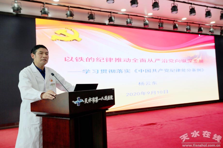 紀(jì)委書記楊云東在培訓(xùn)中講到,履行黨風(fēng)廉政建設(shè)主體責(zé)任和監(jiān)督責(zé)任,就是要加強(qiáng)黨風(fēng)廉政教育,嚴(yán)明紀(jì)律紅線,提高拒腐防變能力。希望全院廣大黨員干部和醫(yī)務(wù)人員嚴(yán)格遵守黨的紀(jì)律規(guī)定和國家有關(guān)法律法規(guī)。黨建辦(紀(jì)檢監(jiān)察室)負(fù)責(zé)人張亮圍繞《嚴(yán)格發(fā)展黨員程序提高發(fā)展黨員質(zhì)量》主題進(jìn)行了詳細(xì)解讀。