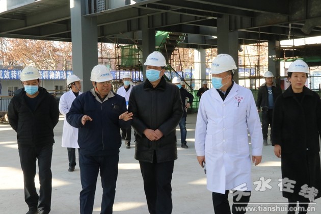 12月23日下午,天水市衛(wèi)健委黨組書記、主任陳克孝一行4人來市第五人民醫(yī)院調(diào)研新冠肺炎疫情防控及改擴(kuò)建項目建設(shè)情況。市五院黨總支書記、院長潘臨平陪同調(diào)研。