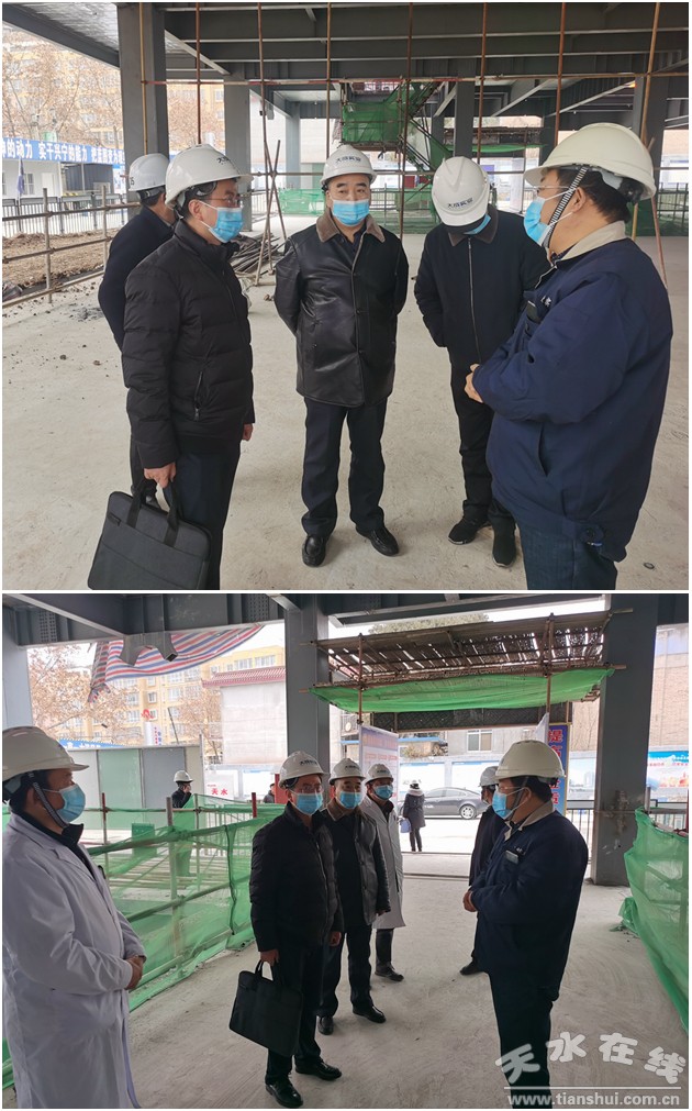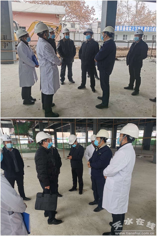 12月28日,市政府辦秘書(shū)處秘書(shū)七科科長(zhǎng)彭高軍會(huì)同市衛(wèi)健委、市財(cái)政局、市建設(shè)局等相關(guān)部門(mén)同志,對(duì)天水市第五人民醫(yī)院改擴(kuò)建項(xiàng)目建設(shè)情況進(jìn)行督查。市五院黨總支副書(shū)記、副院長(zhǎng)馬茂忠陪同督查。