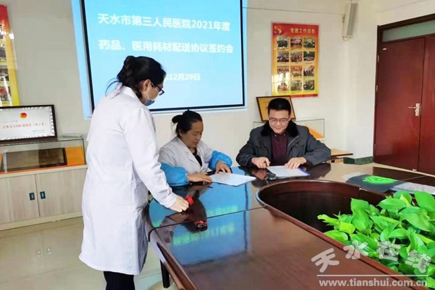 為了加強我院藥品、醫(yī)用衛(wèi)生耗材的質(zhì)量管理,增強藥品、衛(wèi)生耗材的質(zhì)量意識,規(guī)范我院醫(yī)藥、耗材購銷行為,進一步營造公平交易、誠實守信的購銷環(huán)境,保障供需雙方的共同利益,我院于2020年12月29日召開現(xiàn)場簽約會。