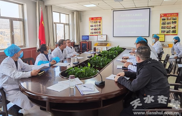 2月8日上午,天水市第三人民醫(yī)院首先進行了全員新冠病毒核酸檢測應(yīng)急處置桌面推演及現(xiàn)場演練協(xié)調(diào)會議。會議由副院長王剛平主持,院長李剛、副院長侯愛國、張琰亮及相關(guān)職能科室、部門負責(zé)人參加了推演。桌面推演會上,副院長王剛平宣讀了應(yīng)急預(yù)案及演練方案,對桌面推演和現(xiàn)場演練進行安排部署。隨后,相關(guān)職能科室對應(yīng)急處置演練方案中的十個場景進行了推演和詳細說明,其他科室負責(zé)人分別對核酸采樣、檢測整個過程的環(huán)節(jié)問題提出了建設(shè)性意見。幾位分管副院長分別對應(yīng)急處置措施提出了指導(dǎo)性意見,并就環(huán)節(jié)問題與相關(guān)科室負責(zé)人展開討論,桌面解決、達成共識。最后,院長李剛對醫(yī)院全員新冠病毒核酸檢測隊伍建設(shè)、應(yīng)急響應(yīng)措施、采樣操作規(guī)范性、督導(dǎo)檢查及落實整改、受檢者一米線間隔和安全防護等提出了更高的要求。