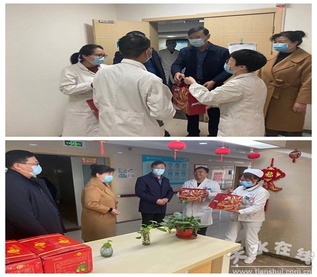 2月11日除夕夜,在萬家燈火初上、闔家團(tuán)圓的幸福時刻,天水市第四人民醫(yī)院領(lǐng)導(dǎo)班子成員帶領(lǐng)相關(guān)職能部門負(fù)責(zé)人走訪慰問了堅守在疫情防控、醫(yī)療護(hù)理、醫(yī)技后勤等崗位的一線職工,向他們致以新春的問候和最美好的祝福。