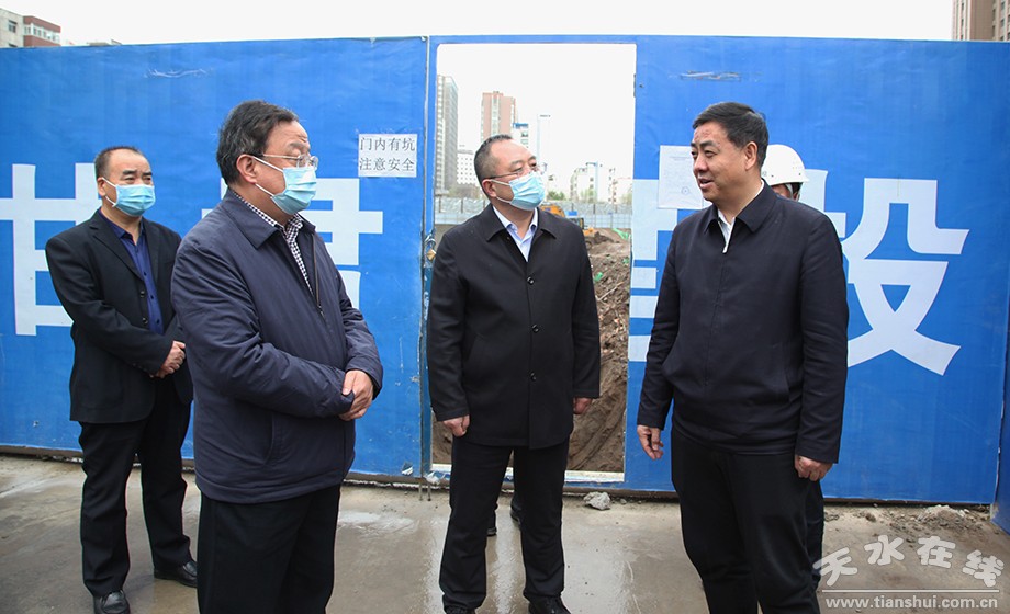 3月31日下午,天水市政府副市長逯克宗帶領(lǐng)市衛(wèi)健委黨組書記、主任陳克孝及相關(guān)人員來天水市第一人民醫(yī)院現(xiàn)場調(diào)研家屬院棚戶區(qū)改造項(xiàng)目工程進(jìn)展情況和我院新冠疫苗接種工作。院黨委書記問肅生,院長王定新及相關(guān)負(fù)責(zé)人陪同調(diào)研。。