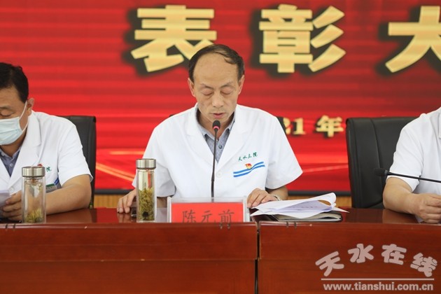 院黨委委員、副院長(zhǎng)陳元前宣讀了甘肅省衛(wèi)生健康委員會(huì)關(guān)于表彰2021年甘肅省優(yōu)秀醫(yī)師團(tuán)隊(duì)和優(yōu)秀醫(yī)師的決定、天水市衛(wèi)生健康委員會(huì)關(guān)于表彰2021年天水市優(yōu)秀醫(yī)師團(tuán)隊(duì)和優(yōu)秀醫(yī)師的決定。
