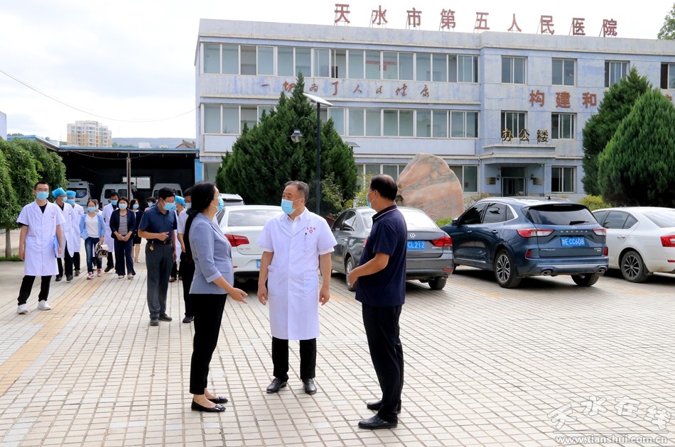8月27日上午,天水市政協(xié)黨組成員、副主席高媛瑾,市政協(xié)民宗三胞委主任李小敏,市政府辦公室督察專員何侃等一行9人對天水市第五人民醫(yī)院公共衛(wèi)生應急管理體系建設(shè)情況進行調(diào)研。市衛(wèi)健委黨組成員副主任王引平帶領(lǐng)市衛(wèi)健委相關(guān)職能部門負責人隨行。市五院黨總支書記、院長潘臨平及院領(lǐng)導班子成員、醫(yī)院部分科室負責人陪同調(diào)研。