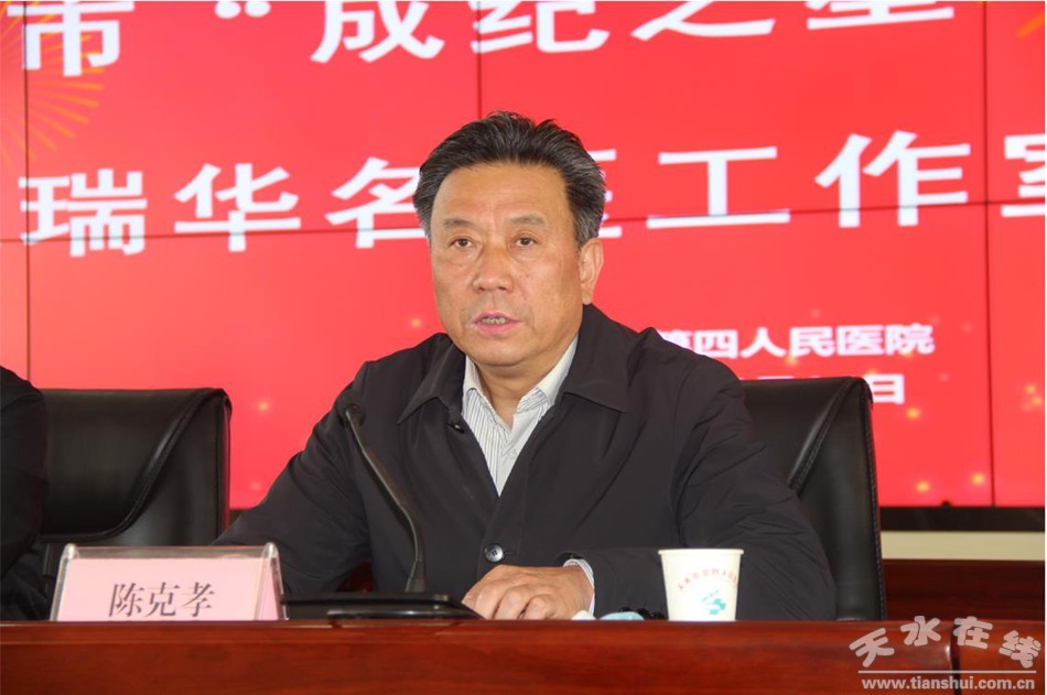 10月16日,天水市“成紀之星”項目之一——“魏瑞華名醫(yī)工作室”揭牌儀式在天水市第四人民醫(yī)院舉行。市人民政府黨組成員逯克宗,市衛(wèi)生健康委黨組書記、主任陳克孝,天津醫(yī)科大學眼科醫(yī)院黨委書記魏瑞華,麥積區(qū)人民政府副區(qū)長成紅梅,麥積區(qū)衛(wèi)健局局長潘志強,天津醫(yī)科大學眼科醫(yī)院黨委辦公室副主任張虹出席揭牌儀式。醫(yī)院領導班子成員、職工代表等60余人參加揭牌儀式。
