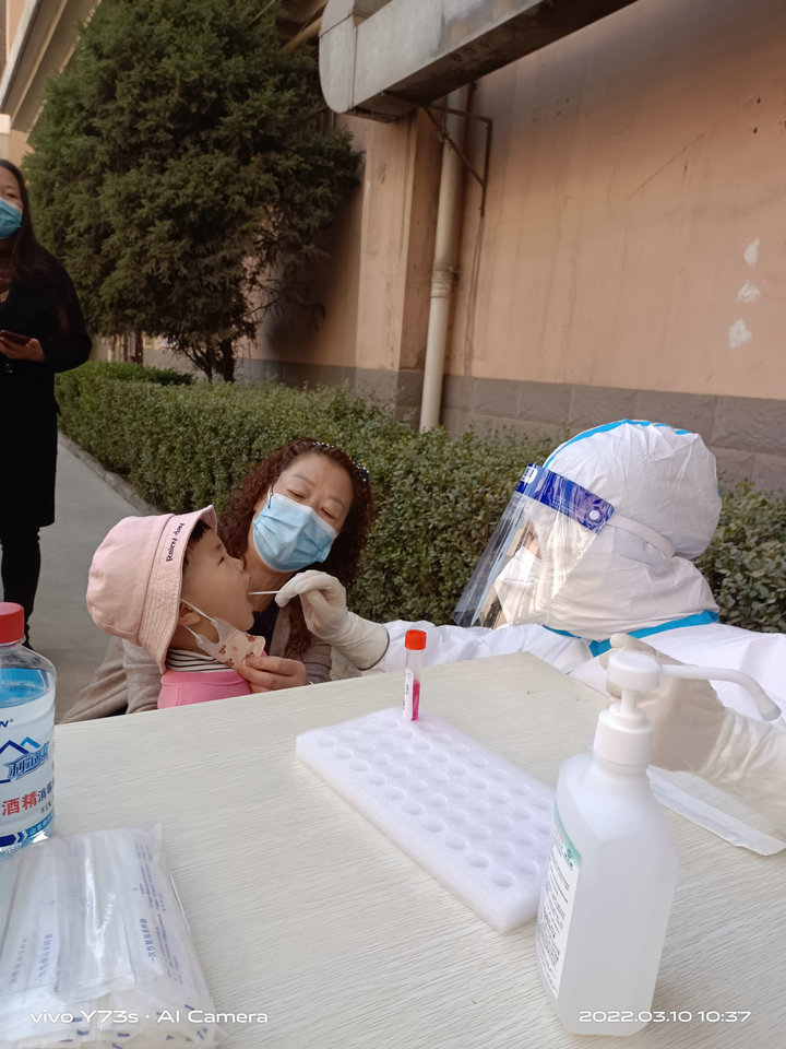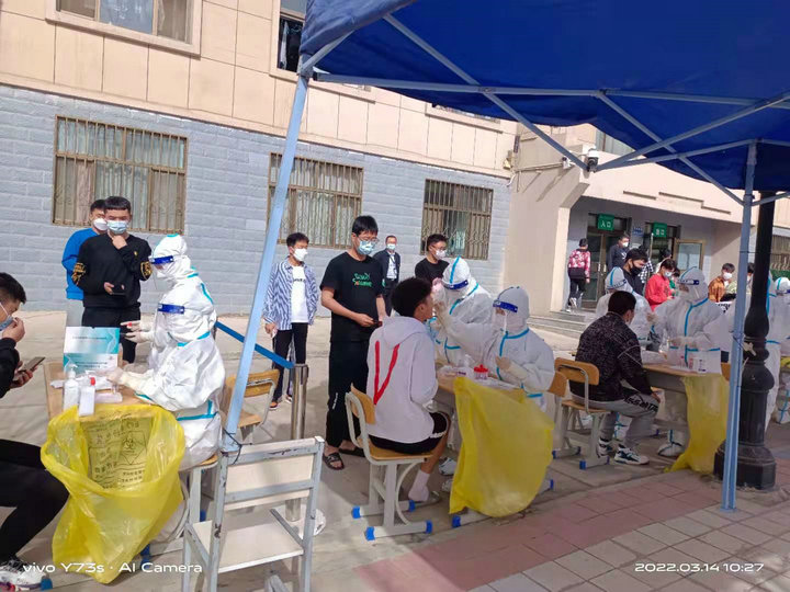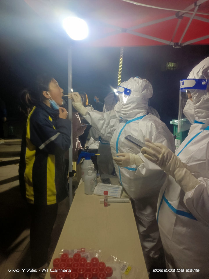 4小時的車程抵達蘭州,我們顧不上整理行裝,立即按照既定的編組和分工在不同的核酸采樣點開展工作。從下午到夜晚,一個一個進行核酸采樣,封閉的防護服讓人燥熱難忍,護目鏡上流滿了汗水,但大家只有一個想法,堅持堅持再堅持,多做幾個人,疫情就能盡快得到控制。大家雖精疲力竭,但沒有一人喊累抱怨、沒有一個人退出戰(zhàn)場,因為大家深知我們的堅持可以給群眾力量和信心,可以幫助這座城市一起擊敗奧密克戎這個“病魔”!