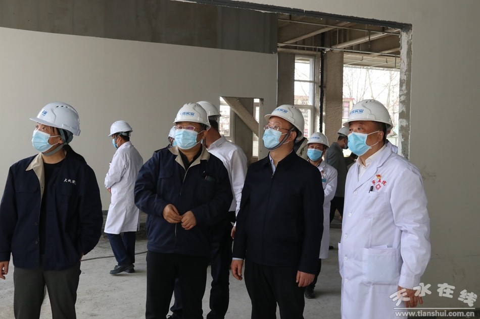 3月15日,天水市委常委、常務(wù)副市長(zhǎng)賈義翔,市政府副秘書長(zhǎng)馮榮就市五院新冠肺炎疫情防控工作及改擴(kuò)建項(xiàng)目建設(shè)情況進(jìn)行調(diào)研。市五院黨總支書記、院長(zhǎng)潘臨平陪同調(diào)研。