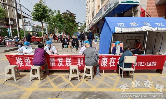 2022年4月25日至5月1日是第20個(gè)《職業(yè)病防治法》宣傳周。4月28日上午,我院8名醫(yī)務(wù)人員走進(jìn)王家磨社區(qū),在按照疫情防控常態(tài)化要求,嚴(yán)格落實(shí)安全防控措施的前提下,開展了以“一切為了勞動(dòng)者健康”為主題的宣傳活動(dòng)。