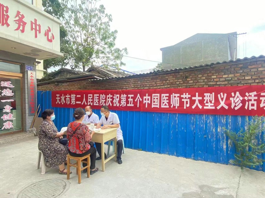 在第五個(gè)“中國(guó)醫(yī)師節(jié)”來(lái)臨之際,為弘揚(yáng)“敬佑生命、救死扶傷、甘于奉獻(xiàn)、大愛(ài)無(wú)疆”的職業(yè)精神,展示醫(yī)師隊(duì)伍“愛(ài)崗敬業(yè)、奮發(fā)有為、服務(wù)為民”的精神風(fēng)貌,8月17日,天水市第二人民醫(yī)院門診部和心血管內(nèi)科二病區(qū)專家在麥積區(qū)道北衛(wèi)生院開(kāi)展了以“‘醫(yī)’心向黨、踔厲奮進(jìn)”為主題的大型義診服務(wù)活動(dòng)。